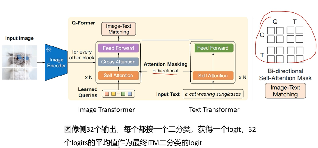 对图像侧输出的32个token分别做2分类,32个logits的平均值作为最终ITM的logit