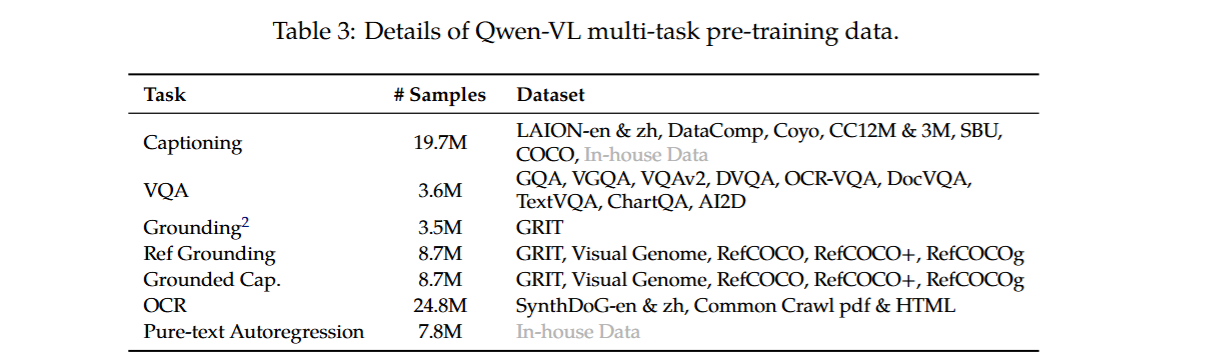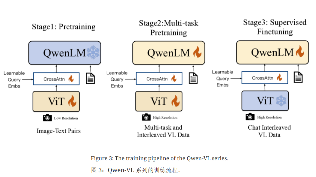 和Qwen-VL 一样,Qwen2.5-VL同样分为3个阶段进行预训练: