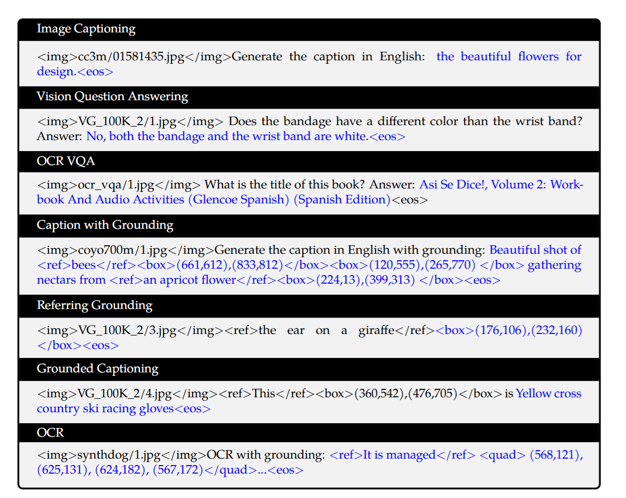 - 第二阶段则在多任务(image-caption,OCR,交错的图像文本文章,VQA,视频对话,图像知识)上训练整个模型